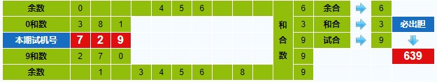 本期3d试机号开出的号码是728,胆码计算器开出的号码是639,没有重合的号码。结合近期试机号命中开奖号走势图来看,试机号的命中概率比较可观,目前连续两期均出现命中的试机号,并且在近十期中命中期数达到9期,这是一个非常高的概率了,因此本期建议重点关注试机号出现的号码,尤其同为本期隔期号的2号球合7号球。