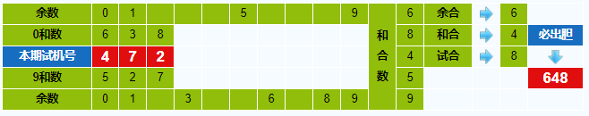 本期3d试机号开出的号码是472,胆码计算器开出的号码是648,重合一个号码4。结合近期试机号命中开奖号走势图来看,试机号的命中几率较低,空缺情况比价严重,目前已有三期空缺。但从另一个角度,看试机号命中长期空缺的情况较为少见,而且在三期的空缺之后便有较大的提升空间,因此本期命中的几率还是比较大的,建议多加关注重合的4号球。