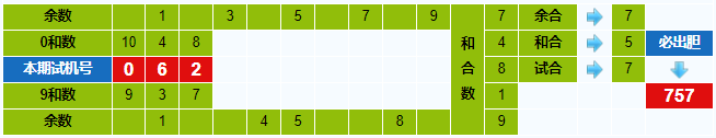 本期3d试机号开出的号码是062,胆码计算器开出的号码是757,没有重合的号码。结合近期试机号命中开奖号走势图来看,试机号的命中几率还有很大的上升空间,上期命中一个号码,结束了两期空缺,本期看好命中一码。2号球时近期出现在试机号中最频繁的号码,应当多加留意。