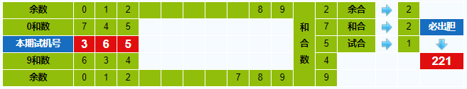 本期试机号胆码计算器推荐胆码:221
