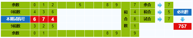 本期试机号胆码计算器推荐胆码:757