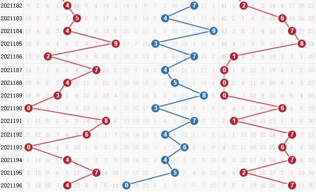 和值分析:和值上期开出了11,和值又有些走小了,近期和值也是集中在中和值,接下来和值有走大的趋势,主看中大和值。