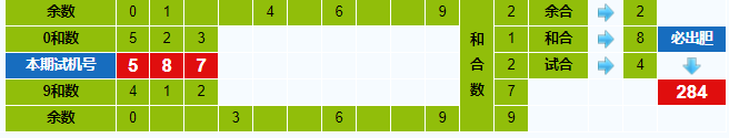本期3d试机号开出的号码是587,胆码计算器开出的号码是284,重合一个8号球。结合近期试机号命中开奖号走势图来看,近期试机号的连续命中几率依旧吃走高,目前连续四期命中开奖号,并且在上期一次出现了两个命中的开奖号,可见概率之高。在本期试机号中,8号球时隔期号,而且连续两期以试机号出现,有可能伴随较为强势的升温,本期重点关注8号球。