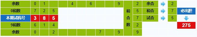 本期3d试机号开出的号码是385,胆码计算器开出的号码是275,重合了一个5号球。结合近期试机号命中开奖号走势图来看,虽然上期试机号命中记录空缺一期,但近期试机号的命中几率总体上没有明显的走低趋势。5号球近期频繁出现在试机号中,并且为本期重复号,建议多加关注5号球。