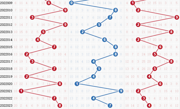 和值分析:上期和值开19,振幅是开出了5,近期和值变化都不是很大,本期也看好和值的就近取值,苏会文本期参考号码走势分析,重点推荐本期和值范围:12—18