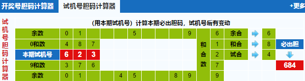 结合试机号胆码计算器来看,6号球有四期没有开出,近期还是要小防温号的开出;8号球是近期的大热号,走势很热,继续看好热开;4号球有些降温的,本期开出的可能性不大。