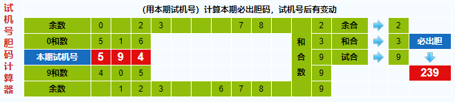 3d试机号胆码计算器:今晚必出胆码239