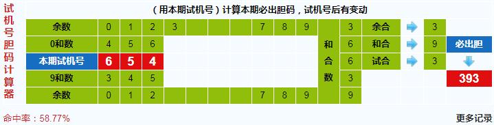 本期3d试机号胆码计算器给出结果:393