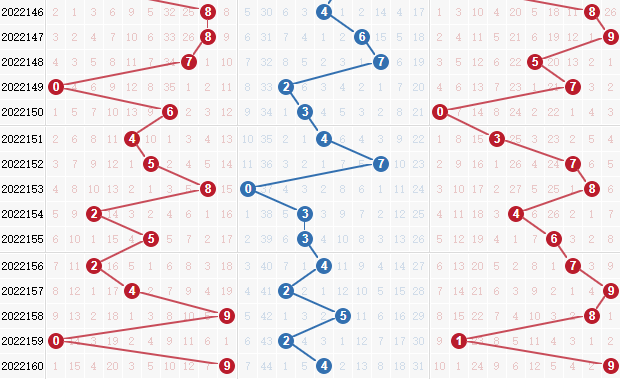 和值分析:上期和值开22,振幅是开出了19,大振幅的开出,最近和值变化很大,严防和值走小,苏会文本期参考号码走势分析,重点推荐本期和值范围:8—16