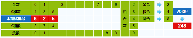 本期试机号胆码计算器推荐胆码:248