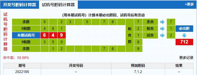 本期3d试机号胆码计算器给出结果:712