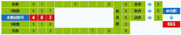 本期3d试机号开出的号码是483,胆码计算器开出的号码是693,重合了一个3号球。结合近期试机号命中开奖号走势图来看,近期试机号的命中几率呈现出逐渐走高的趋势,目前连续命中四期,势态非常良好。试机号中的3号球在近十期中频繁出现于试机号中,并且有过命中记录,按照这种趋势,本期有较大可能再次命中,建议关注下3号球。