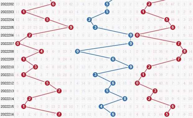 跨度分析:上期开出跨度2,小跨度的开出,跨度走小了一下,但是近期大跨度开出更多,本期看好大跨的开出,苏会文本期参考号码走势分析,重点推荐本期跨度范围:3—7