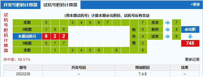 胆码计算器的结果是748,4号球连续开出了3期的号码,近期的4号球是走热的趋势,可以看好4号球的开出;7号球是遗漏了6期的号码,7号球是一个走冷的趋势,不看好7号球的开出;8号球是遗漏了3期的号码,近期的8号球开出次数过少,注意8号球的回补。