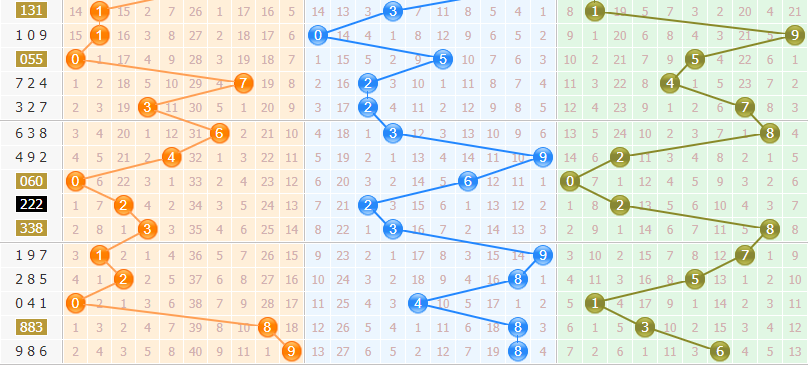 【十位】:上期开出十位8号,十位上近5期呈现一个热-冷-冷-热-热的变化趋势,近期十位上号码冷热交叉出现,本期防冷码再出。
