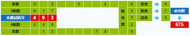 本期3d试机号开出的号码是493,胆码计算器开出的号码是675,没有重合的号码。结合近期试机号命中开奖号走势图来看,近期试机号命中几率还有着比较大的上升空间。近五期共命中一期,上期没有命中的号码的号码,近期空缺率有小幅度提高。试机号中的3号球为本期重复号,可以重点关注一下。