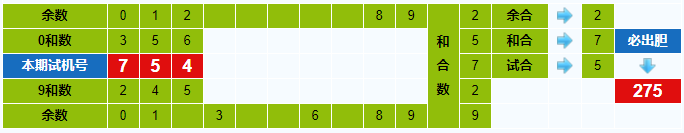 本期试机号胆码计算器推荐胆码:275