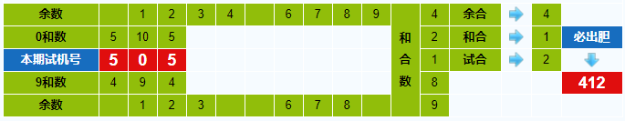 本期试机号胆码计算器推荐胆码:412