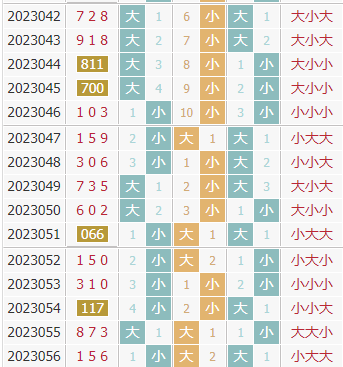 上期开出了号码156,组六类型,奇奇偶,小大大形态,和值12,跨度5。近10期里全大开出了0期,2大1小开出了5期,1大2小开出了4期,全小开出了1期,小数占比更多,但是走势上近2期是大数走热,预计大数会继续开出,本期关注大数。