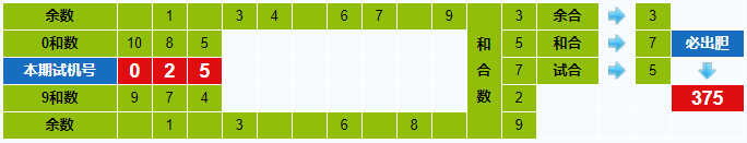 本期试机号胆码计算器推荐胆码:375