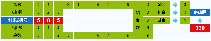 本期试机号胆码计算器推荐胆码:339