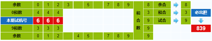 本期试机号胆码计算器推荐胆码:839