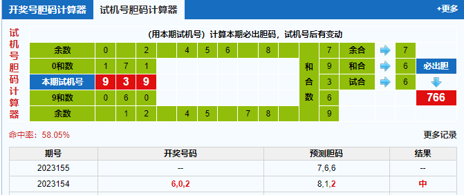 胆码计算器的结果是766,6号球是刚刚开出过的号码,近期的重号开出走势比较好,可以看好6号球的开出;7号球是遗漏了4期的号码,近期的7号球是有同间隔的开出,可以看好7号球的出号。
