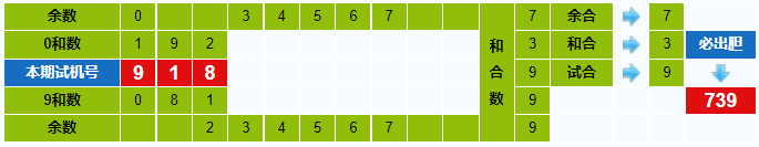 本期3d试机号开出的号码是918,胆码计算器开出的号码是739,重合了一个9号球。结合近期试机号命中开奖号走势图来看,近期试机号的命中几率有回升的表现,目前连续命中两期,本期继续命中的可能性非常高,建议多加关注试机号给出的三码。