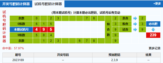 胆码计算器的结果是239,2号球是刚刚开出过的号码,近期的2号球开出次数比较优势,可以看好2号球的出号;3号球是遗漏了1期的号码,近期的3号球是有稳定的趋势,可以看好3号球的出号。