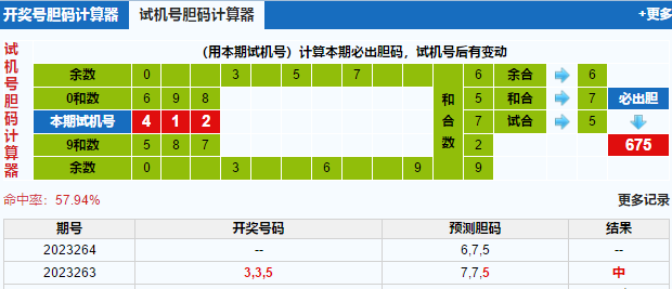北斗星第2023264期3d试机号后预测分析: