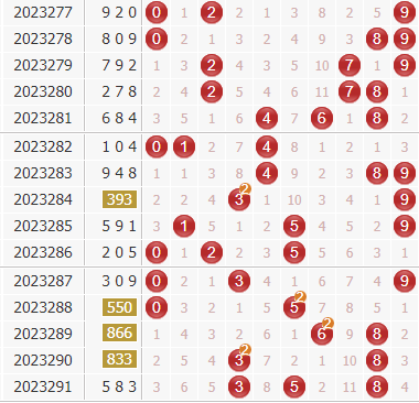 【个位】:上期开出个位3号,个位上近5期呈现一个温-温-冷-热-热的变化趋势,个位走势上走势表现平衡,注意温号优势回补。