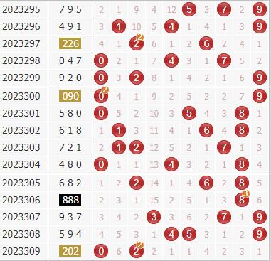 【十位】:上期开出十位0号,十位上近5期呈现一个热-热-冷-温-冷的变化趋势,近期十位上热号的活跃,带动了冷温号的出现。