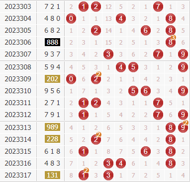 十位出3号,近5期奖号分别遗漏6、10、12、2、9,近5期内十位走势呈现升温解冻的现象,温号占比较大,热号也时有出现,按照走势规律,预计这种态势下会继续升温,本期偏向温号0开出,防热号。