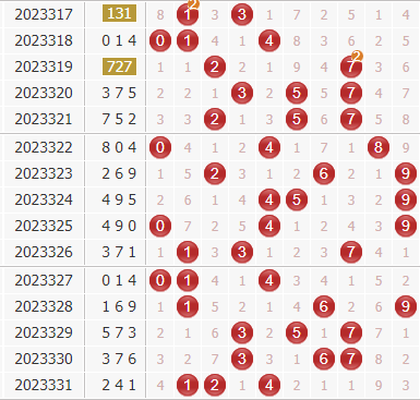 【十位】:上期开出十位4号,十位上近5期呈现一个温-热-热-热-冷的变化趋势,近期十位上以热号开出为主刺激走势,本期防冷温码出现。