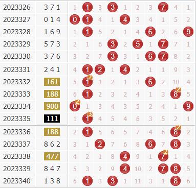 012路分析:上期012路比值为1:1:1,近10期012路之比为6:15:9,从表现力来看,1路活跃程度高,走势较好,也有连开的趋势,2路稍微落后,0路遗漏过多,近期1路和2路表现较热,预计本期会继续出号。