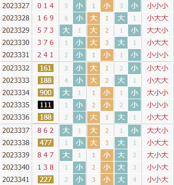 上期开出了号码227,组三类型,偶偶奇,小小大形态,和值11,跨度5,近10期里全大开出了0期,2大1小开出了5期,1大2小开出了4期,全小开出了1期,大小占比持平,但是走势上近2期是小数走热,预计小数会继续开出,本期关注小数。