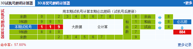 结合试机号胆码计算器来看,8号球开出间隔比较大,回暖的可能性不大,不建议关注;4号球目前都是小间隔出号,看好4号球的隔期开出。