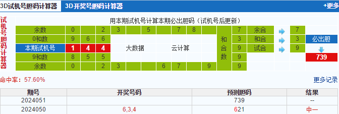 北斗星第2024051期3d试机号后预测分析:
