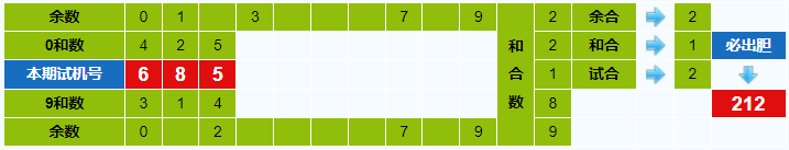 本期试机号胆码计算器推荐胆码:212