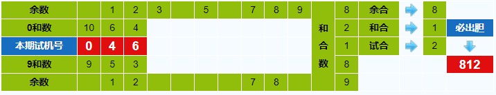 本期3d试机号开出的号码是046,胆码计算器开出的号码是812,没有重合的号码。结合近期试机号命中开奖号走势图来看,近期试机号的命中率在下滑后出现抬升,目前连续两期命中,上期命中两个号码,本期继续命中的概率非常高,建议多加关注试机号给出的三码。