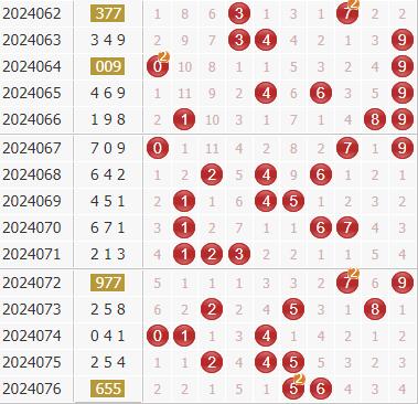 百位出0号,近5期奖号分别遗漏38-1-9-1-5,近期开出低遗漏号码的概率较多,本期大遗漏号码回归的概率稍被拉高,建议关注遗漏值较高的号码,本期建议关注冷号3号。