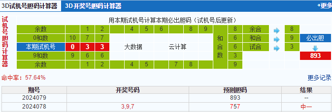 结合试机号胆码计算器来看,8号球就在7号球和9号球的中间,注意8号球作为斜连号的开出;9号球上期刚刚回暖,严防回补连开;3号球不仅开出对子号,上期也连着开出,继续看好3号球的热开。