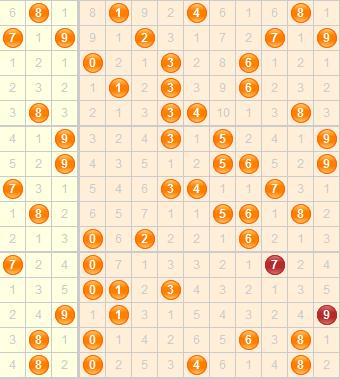 跨度分析:上期跨度开出4,本期留意小码跨度反弹,大码跨度暂时应该不会露面。