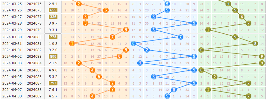 上期开出了号码457,组六类型,偶奇奇,小大大大形态。本期综合分析号码总体遗漏情况,近期号码出号分布较为分散且均衡,目前走势中已无高遗漏号码,间隔期数最高的号码为间隔6期的8号球,可以看出近期遗漏情况总体良好。