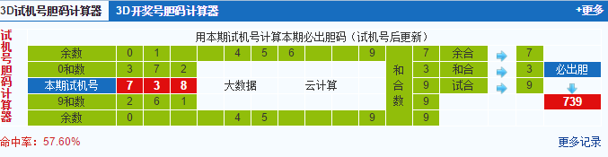 结合试机号胆码计算器来看,7号球上期刚刚开出,近期7号球连开非常强势,继续看好7号球的表现;3号球近期出号比较冷,本期开出的机会不大;9号球就是一个大热号,本期继续看好它的热开。