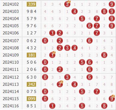 012路分析:上期012路比值为0:2:1,近10期012路之比为14:6:10,从表现力来看,0路出号频繁,1路空缺较多,2路近期回升明显。0路是近期持续热门路数,2路的势态也不可小觑,本期看好0路防2路。