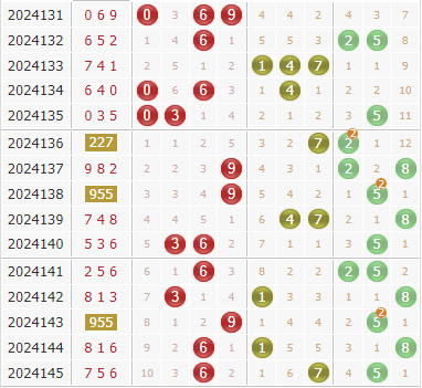 个位上近10期012路比为5:1:4,从数据上看,0路出号火热,其次为2路,但2路近期出现空缺,本期看好2路弥补,本期重点关注2路。
