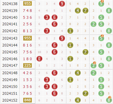 个位上近10期012路比为6:0:4,从数据上看,0路势态已有回升,本期看好再次回归0路,本期重点关注0路。