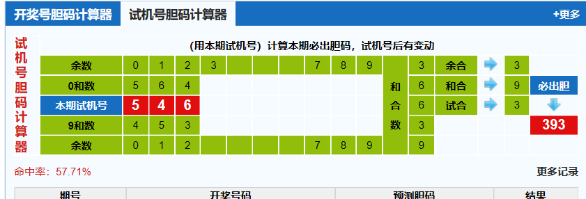本期试机号胆码计算器推荐胆码:393