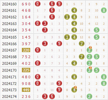 十位上近10期012路比为4:2:4,0路频繁回归,具备上升动力,本期重点关注0路。